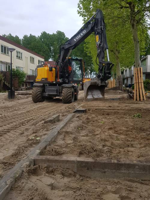 We vervangen hier de bestrating en zorgen dat er betere voorziening is voor de afvoer van hemelwater